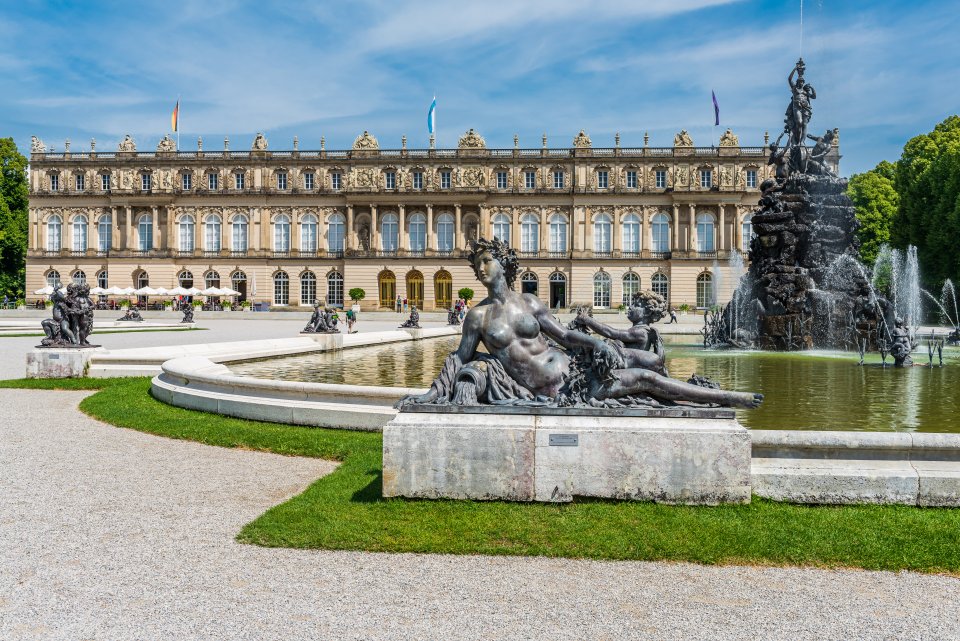 Дворецът „Херенкимзее“, намиращ се на едноименния остров, е поръчан от баварския крал Лудвиг II след преустройване на съществуващия преди това тук манастир. Сградата е проектирана по примера на Версайския дворец от архитекта Георг фон Долман. Строителството започва през май 1878 г. под ръководството на австрийския архитект Юлиус Хофман. Сред най-впечатляващите части на двореца са кралското стълбище, кралската спалня и огромната огледална зала. Особено внимание било обърнато и на градините, които също трябвало да бъдат точно копие на версайските и символ на кралското могъщество и великолепие.